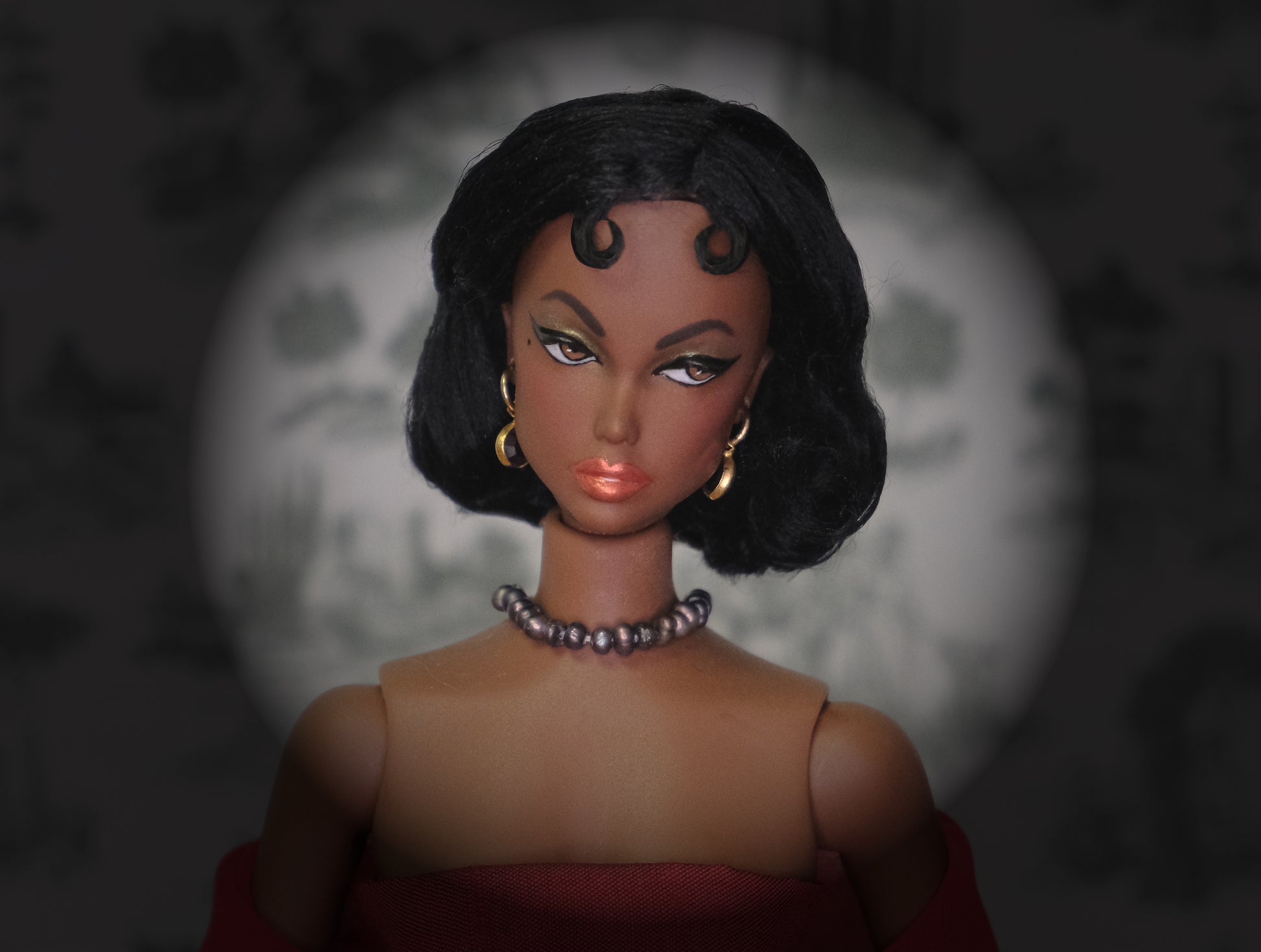 What's included: A hand painted doll with her custom clothing and accessories, 1 resin stand with metal prongs, 1 interchangeable magnetic wig and a wigblock.