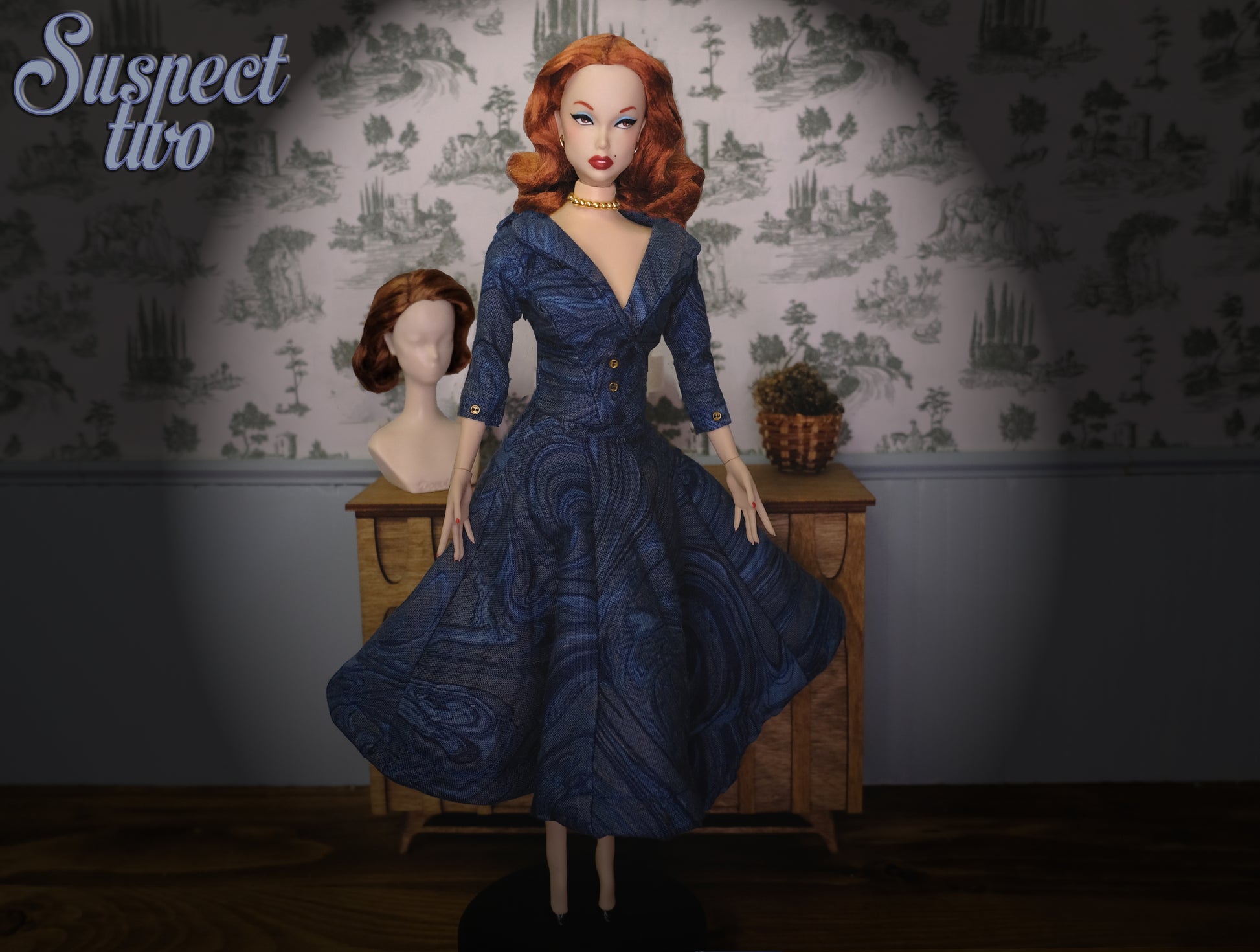 What's included: A hand painted doll with her custom clothing and accessories, 1 resin stand with metal prongs, 1 interchangeable magnetic wig and a wigblock.