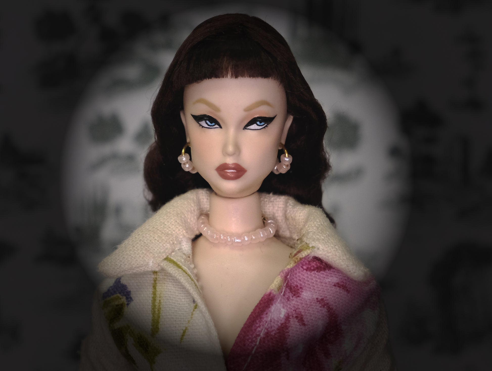 What's included: A hand painted doll with her custom clothing and accessories, 1 resin stand with metal prongs, 1 interchangeable magnetic wig and a wigblock.