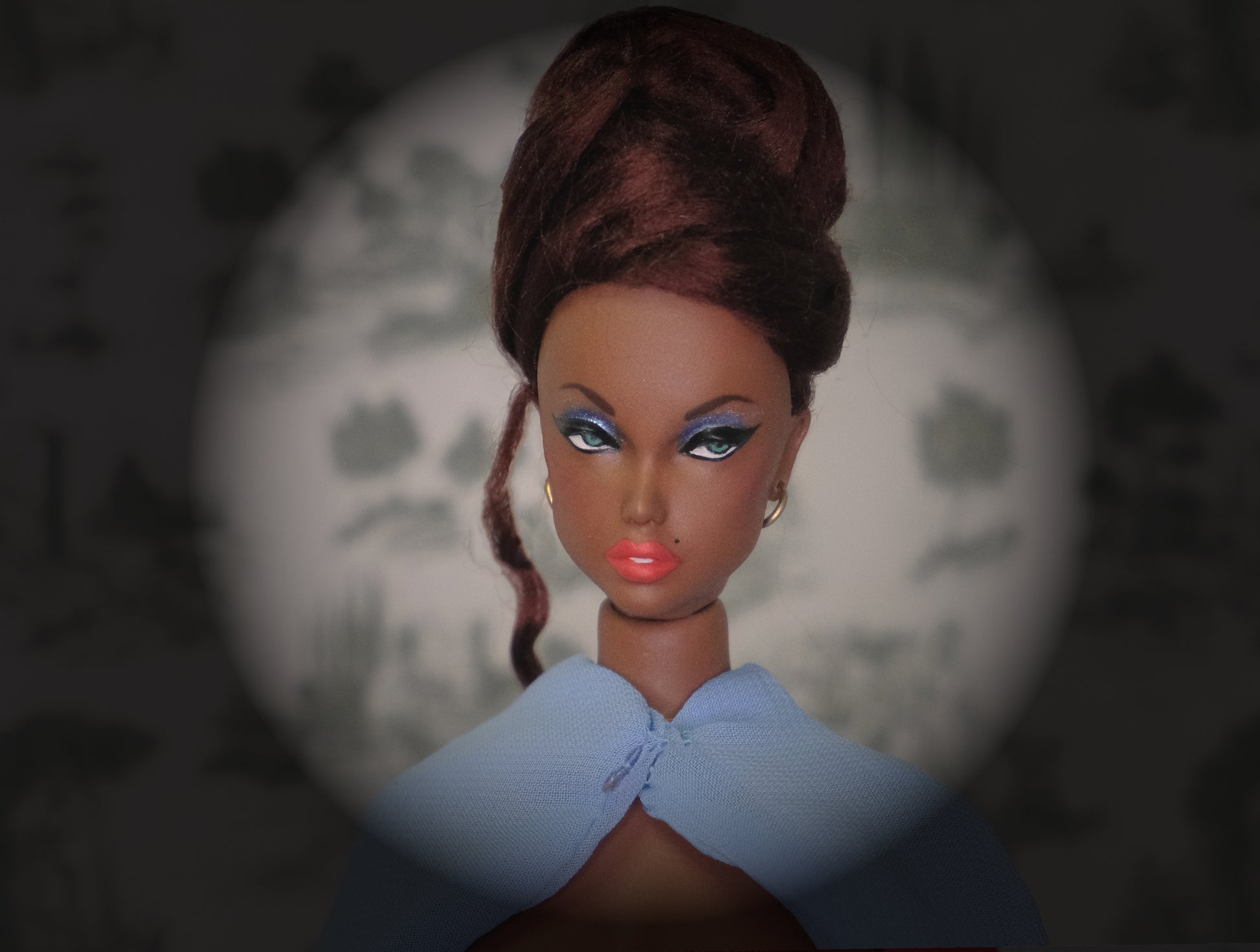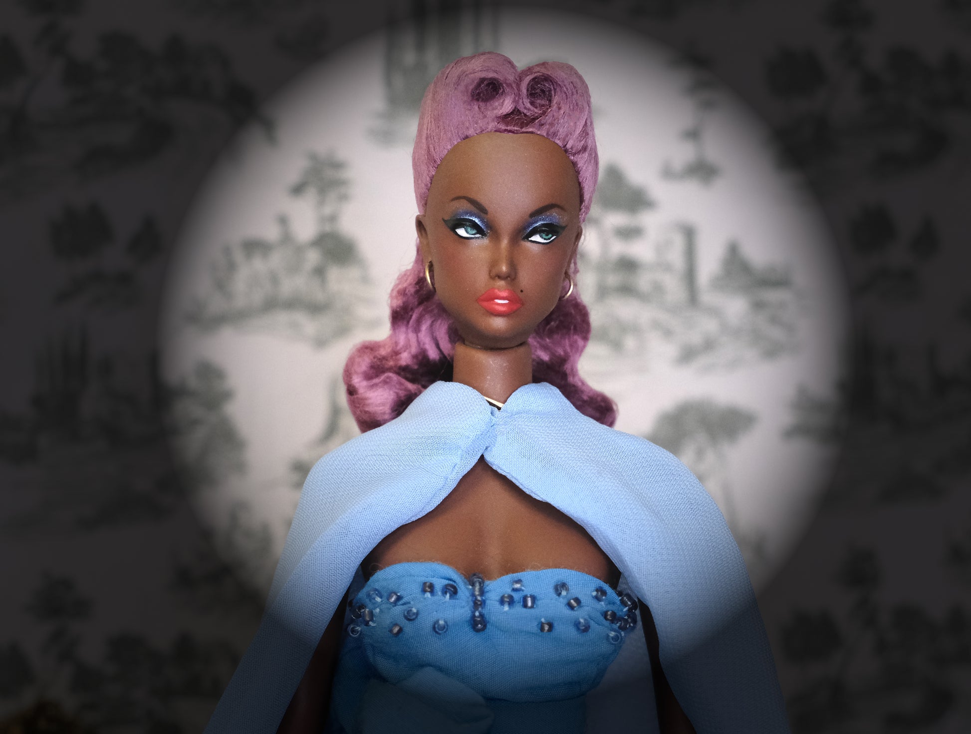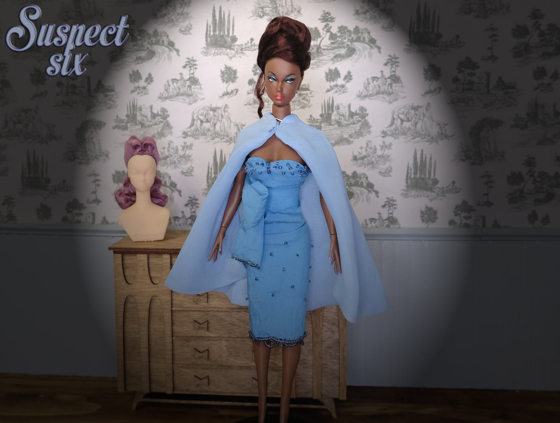 What's included: A hand painted doll with her custom clothing and accessories, 1 resin stand with metal prongs, 1 interchangeable magnetic wig and a wigblock.