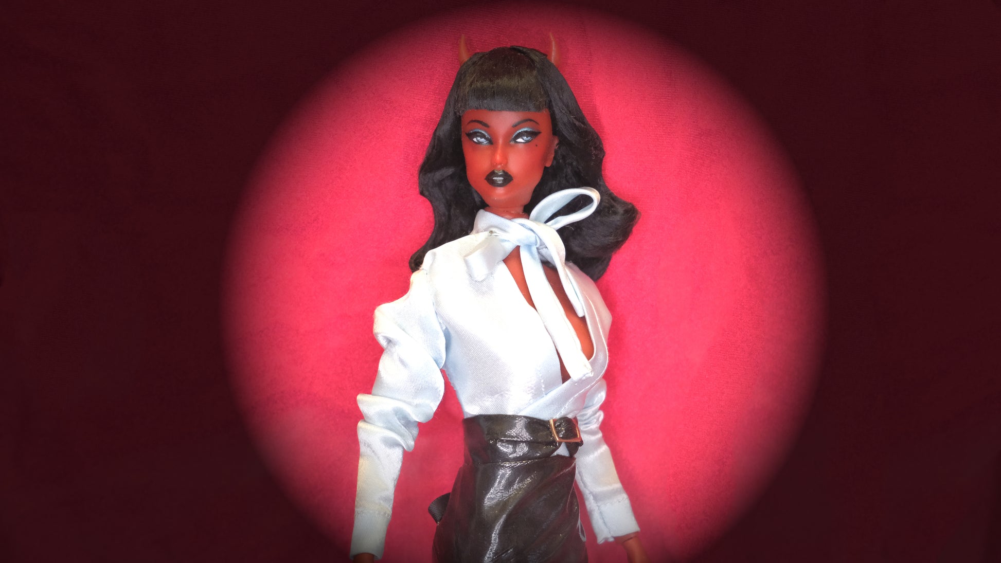 She wasn't on the guest list, but the devil always has a way... This John Willie inspired doll is truly a one of a kind, never to be reproduced again ghoul, get her while you can.
